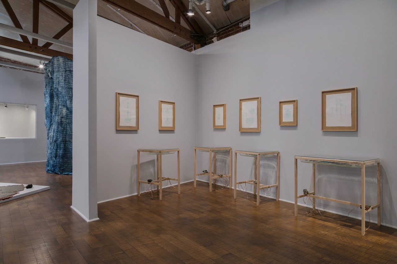 Through her porcelain works, Valdes questions how systems of economic and aesthetic value are embedded within domestic objects. For her work, SED(-to thirst), 2017, Valdes casts a set of plastic water bottles in porcelain. The water brand, Sei, is a particularly expensive “artisanal” water. The disposable plastic bottles are now rendered in clay, equating them to the status of traditional porcelain vessels. Valdes seems to ask if that prestige is due to the water bottles’ actual value, or the perceived status they impart on those who can afford to buy them.