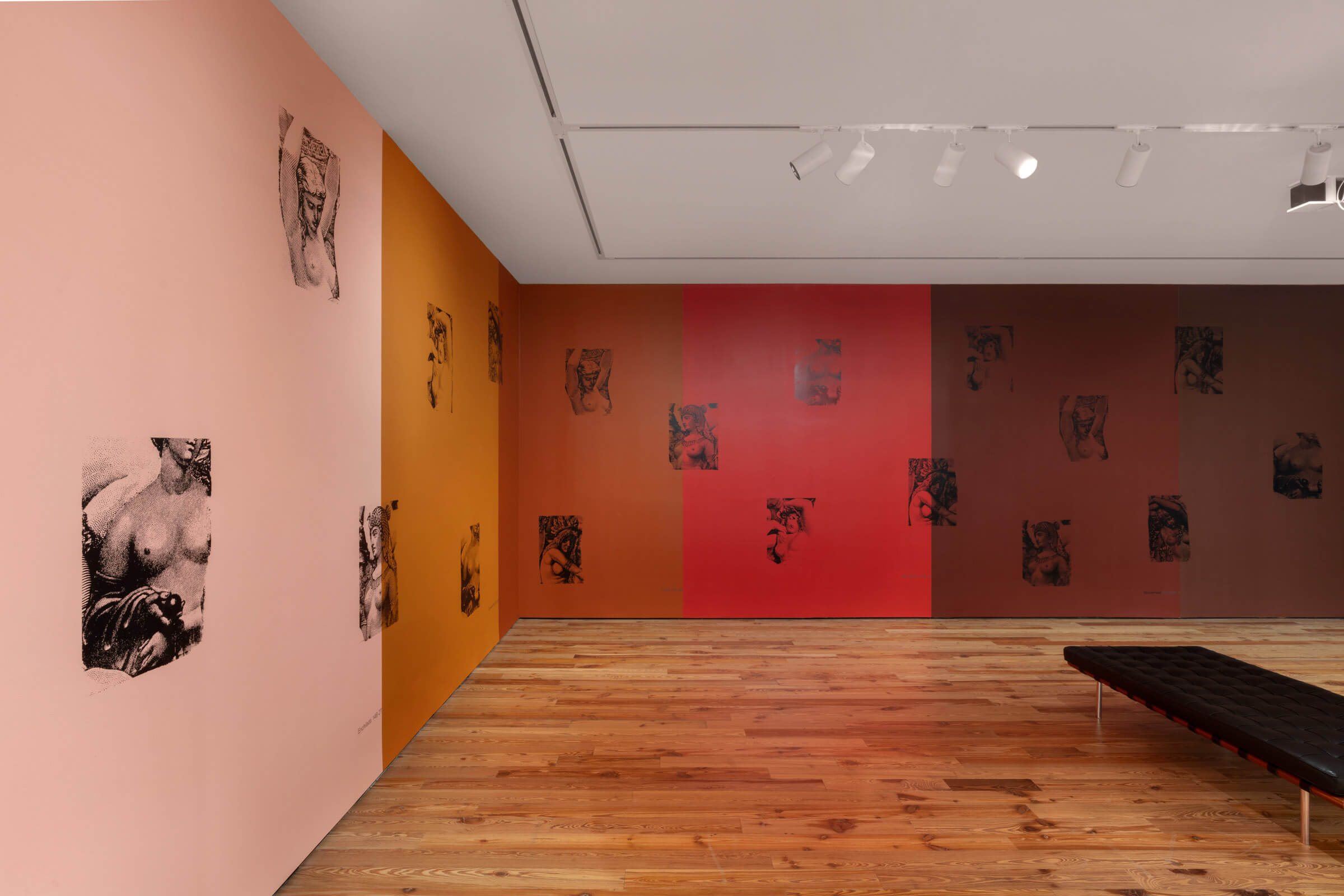 formatting medium: Installation (latex paint, silkscreen, video). Dimensions variable. Take a Second of me, 25:00 min. (loop).